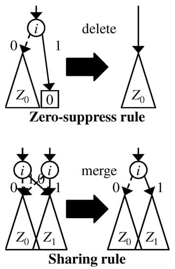 - Minato, S. Zero-Suppressed BDDs for Set Manipulation in Combinatorial Problems. In Proceedings of the Thirtieth AAAI Conference on Artificial Intelligence, Phoenix, AZ, USA, 12–17 February 2016; pp. 1058–1066. [Google Scholar]