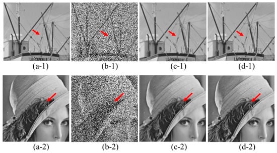 Even with a proper dictionary, the sparse image reconstruction model for impulse noise removal should be carefully defined. Generally, a restored image is obtained by minimizing a model that balance the sparsity and data fidelity [,,]. For instance, as a convex approximation of the sparsity, the commonly used L1 norm may bias to penalize small sparse coefficients than large ones, and, thus, suffers from losing weak signal details in the reconstruction problems, such as image reconstruction [,,], biological spectrum recovery [,,], and fault detection []. Therefore, it is meaningful to incorporate other norms to restore more weak signals.