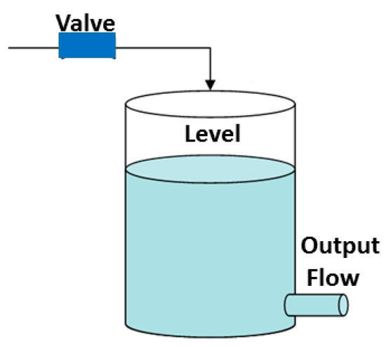 The first benchmark control problem is the water level control in a tank [39,40] and is illustrated in Figure 2.