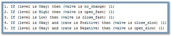 The fuzzy rules that are outlined in Figure 4 were obtained based on analyzing the filling of a water tank [5]. Basically the knowledge needed to control the valve in filling the tank is used for designing the rules.