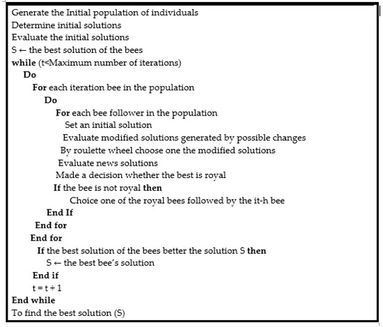 The behavior of a bee in nature is the main inspiration for the BCO algorithm. This methodology is based on creation of multi agent system (colony of artificial bees) capabilities to successfully solve difficult combinatorial optimization problems [43,44,45]. BCO was proposed by Teodorović in 2001. The dynamics in BCO are represented by the following equations: