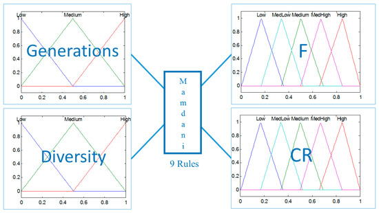 - Salehpour, M.; Jamali, A.; Bagheri, A.; Nariman-zadeh, N. A new adaptive differential evolution optimization algorithm based on fuzzy inference system. Eng. Sci. Technol. Int. J. 2017, 20, 587–597. [Google Scholar] [CrossRef]