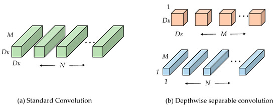 (a) The standard convolution. (b) Depthwise separable convolution comprises of two layers: depthwise convolutions and pointwise convolutions.