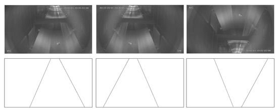 Three examples from the dataset. Three conveyor images (the first line) and their ground truths (the second line).