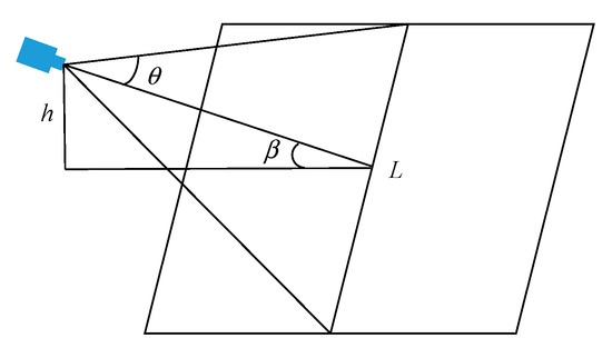 When the camera is at an acute angle to the ground, as the model shown in Figure 6, is the field of view of the camera, is the camera installation height, is the angle between the camera and the ground and is the maximum distance that the camera can detect. The mathematical relationship between them is as follows: