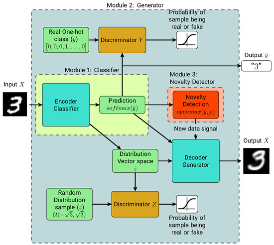 The complete operation of our method is presented in Algorithm 1 and the structure of the semi-supervised AAE model used in conjunction with the novelty detector is shown in Figure 1. In the following subsections we explain each module.