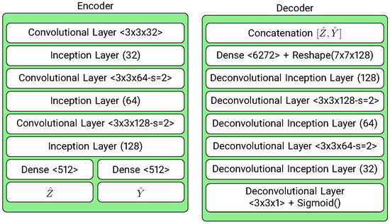 where , and are obtained as output from the encoder, is stochastic noise, and is usually similar to a Gaussian distribution , I being an identity matrix. Moreover, the difference between the input and its reconstruction (usually the Mean Squared Error or the binary cross-entropy between input and output) is reduced, allowing spatial information to be decoded from a reduced, stochastic source with similar characteristics to a real input [33].