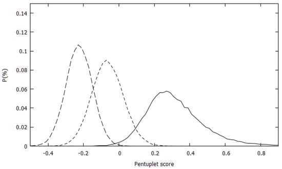 The score developed in Reference [2] for triplets and quadruplets has been applied to pentuplets in the present work, defined as follows. For each sequence and each construct p (triplet, quadruplet and pentuplet) the logarithmic score SCp was defined as: