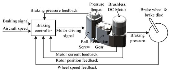 With the development of aviation technology, the performance of modern aircraft has also greatly improved and the requirement of braking system performance is more stringent [1,2,3,4,5]. The electric braking system is a new type of braking system that uses electromechanical actuators instead of traditional hydraulic actuators. Compared with the hydraulic braking system, the electric braking system has advantages of light weight, small volume, and high reliability which make it the development direction of aircraft braking systems in the future [6,7,8,9].