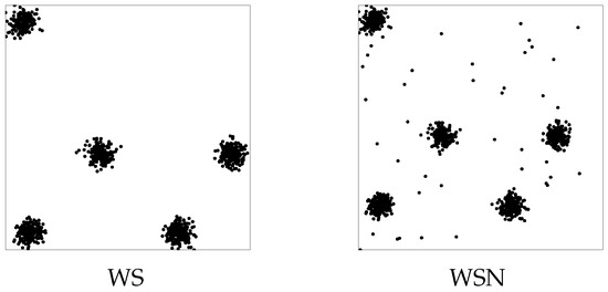Synthetic datasets, well-separated (WS) and well-separated noise (WSN) of points in .