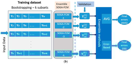 - The error-based (EB) method [16] consists of component forecasts, which are given weights that are inversely proportional to their in-sample forecasting errors. For instance, researchers may give a higher weight to a model with lower error, while they may assign a less weight value to a model that presents more error, respectively. In most of the cases, the forecasting error is calculated using total absolute error statistic, such as the sum of squared error (SSE) [80,83]. The combining weight for individual prediction is mathematically given by:
