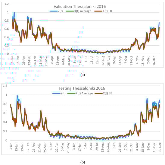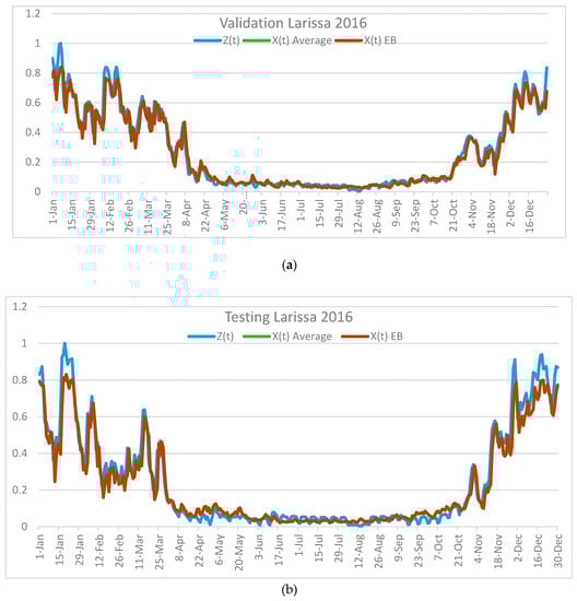 - Although the AVG and the EB methods performed similarly for Athens and Thessaloniki datasets, the EB forecast combination technique presented lower MAE and MSE errors than the AVG for the examined dataset of Larissa (see Figure 5).