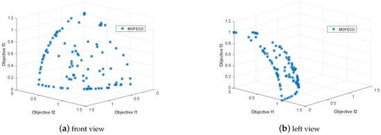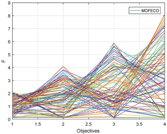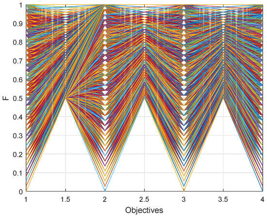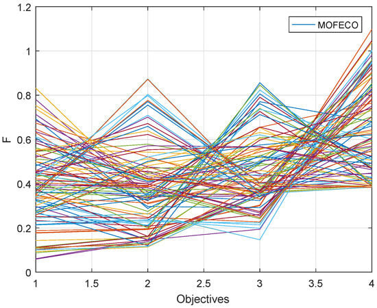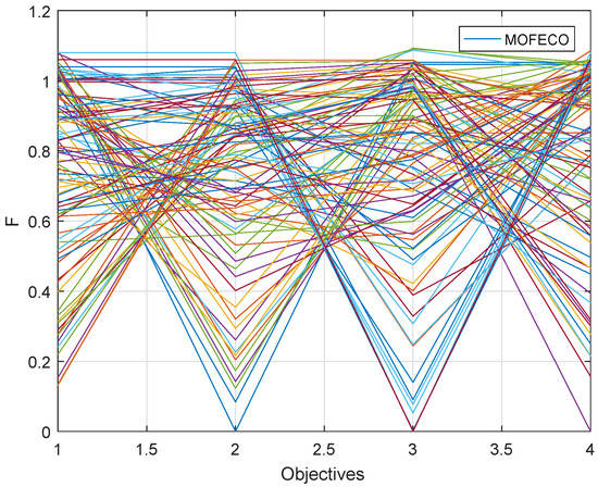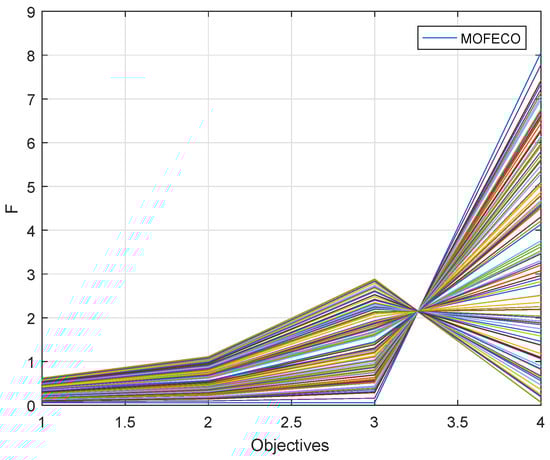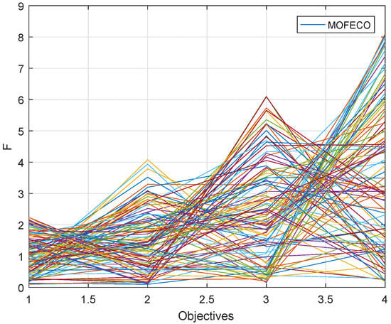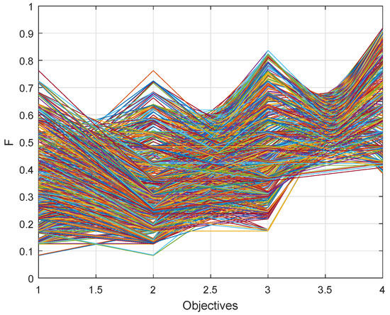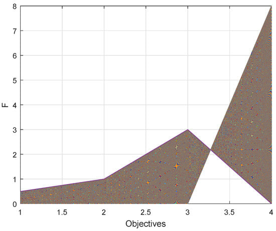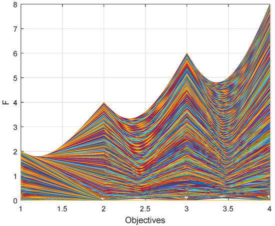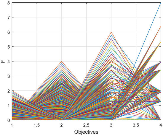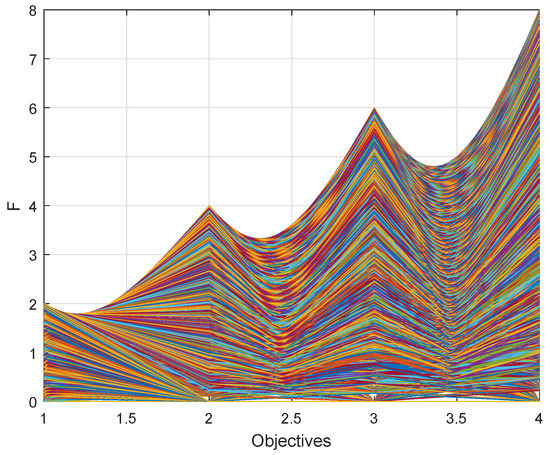 A Multiple-Objective Optimization(MOO) problem with m target functions and D decision variables (minimizing multi-objective problems) is represented by Equation (1) []:
