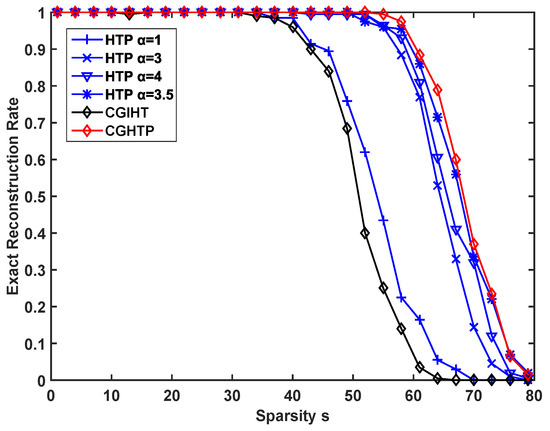 Figure 9 show that the CGHTP is outperforms other algorithms. In addition, for the same rate of exact reconstruction, CGHTP requires fewer samples than other algorithms.