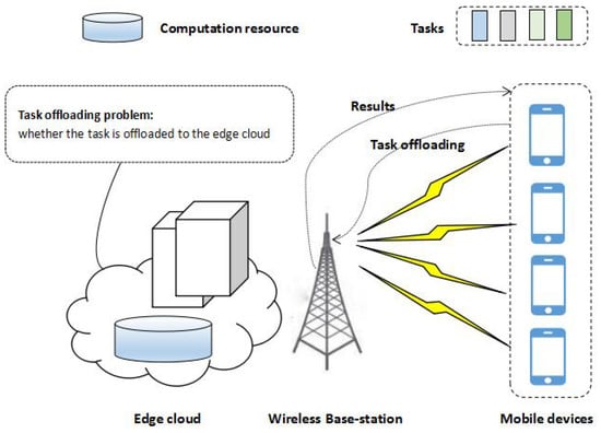 For the problem of computational task offloading, the variable is defined, in order to express whether to offload the task to the edge cloud or not .