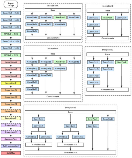 - Szegedy, C.; Vanhoucke, V.; Ioffe, S.; Shlens, J.; Wojna, Z. Rethinking the inception architecture for computer vision. In Proceedings of the IEEE Conference on Computer Vision and Pattern Recognition, Las Vegas, NV, USA, 27–30 June 2016; pp. 2818–2826. [Google Scholar]