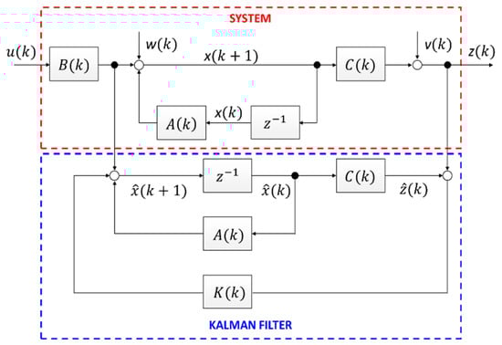 To design a KF, the linear state space model must be first obtained by modeling the target system. The performance of the KF depends largely on how similar the system model is to the actual system. Equation (8) can be described by the following differential equation:
