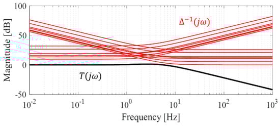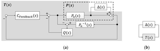 The small-gain theorem was applied to demonstrate the robust stability of the closed loop control system. As shown in Figure 6b, the following conditions are given by the small-gain theorem: