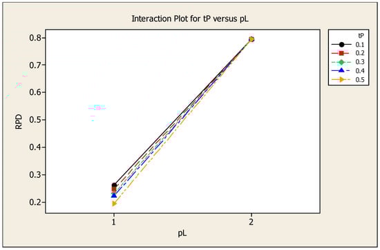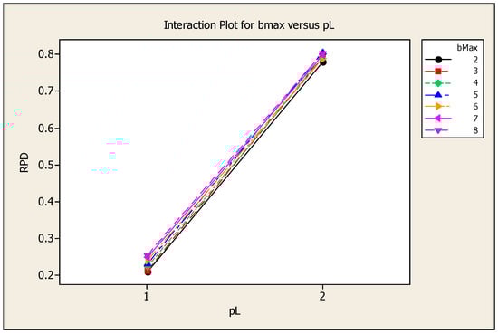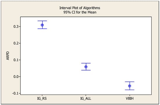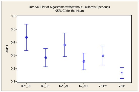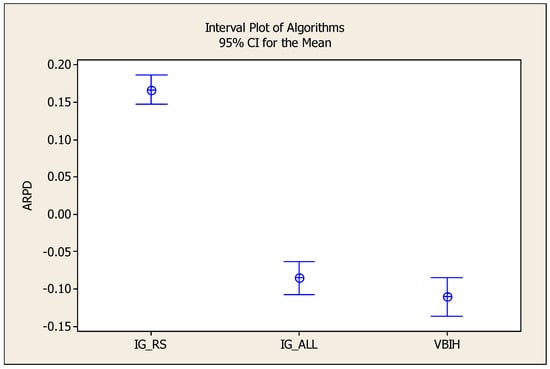 As it can be seen from Figure 3, the following parameters have better ARPD values than the others: , , and . Furthermore, in order to see whether or not there is an interaction effect between parameters, an ANOVA analysis is also given in Table 2.