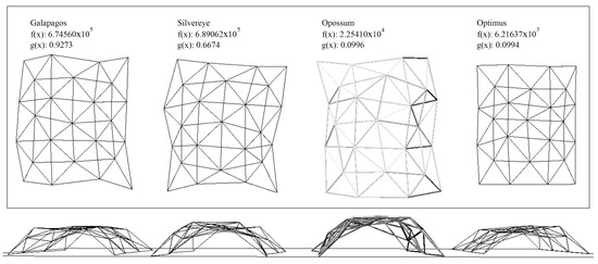 Goat [27] uses the NLopt library [28] in the graphical user interface of Galapagos. The tool considers a mathematically-rigorous approach (gradient-free optimization algorithm) to reach fast and deterministic results. Goat provides several optimization algorithms as well. These are constrained optimization by linear approximation (COBYLA), bound optimization by quadratic approximation (BOBYQA), subplex algorithm (Sbplx), the dividing rectangles algorithm (DIRECT), and controlled random search 2 (CRS2). Very recently, Goat is used for building energy optimization [14] and structure optimization [29,30].