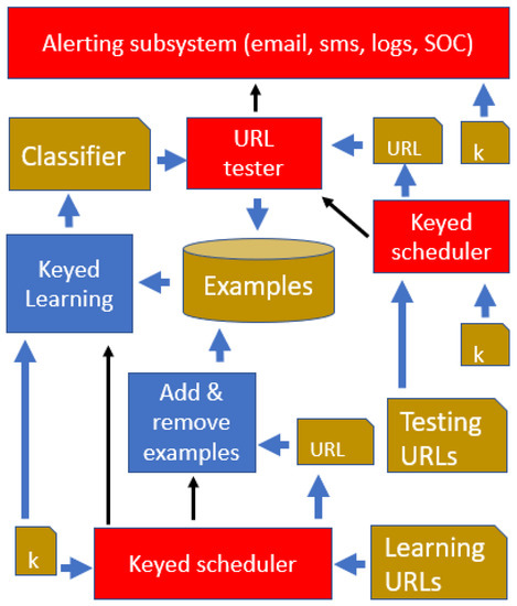 The concept of keyed intrusion detection has been introduced in the literature [21,22,23,24,25], with similar motivations. This was, however, restricted to that particular application domain, and the secret key was used only as a “word delimiter” in intrusion payloads. Keyed learning was first highlighted in a previous conference presentation [26], and is a more general concept than keyed intrusion detection, because it affects any form of learning and uses any kind of secret information. In the present paper we develop this idea with further detail (Section 3).