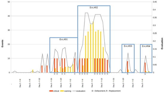 Aggregated evaluation graph and relevant events (production scenario—M1 till M4).
