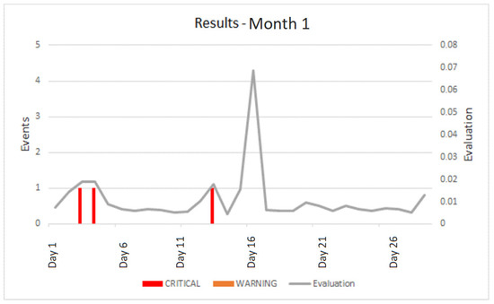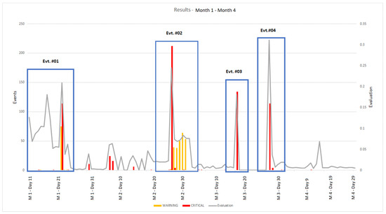 For the complete deployment period (four months: M1, M2, M3, M4), a total of 975 events (warnings or critical messages) were generated, as reported in Table 5.