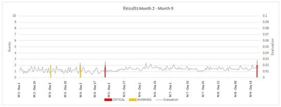 Aggregated evaluation graph and generated alerts (maintenance months MM2 till MM9).