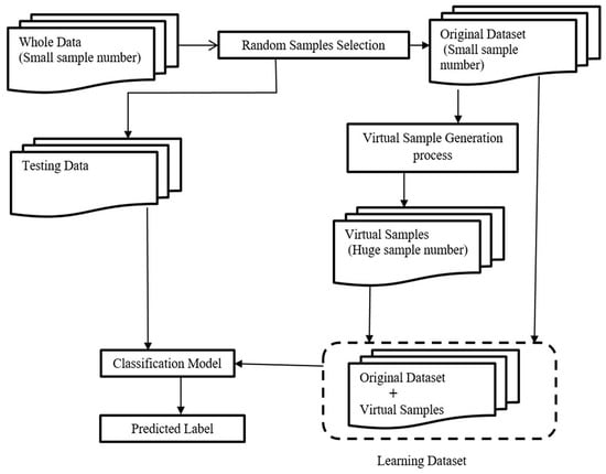 The proposed work can be summarized as follows: the new virtual samples were generated, depending on the original small dataset; the original dataset plus the newly-generated virtual samples both can be added to the training samples to expand the training dataset for machine learning significantly. Thus, our method can produce virtual samples closely related to the original datasets by applying a normal Gaussian distribution. The proposed work aims to make the classification model more stable and overcome the common limitations of the classification performance.