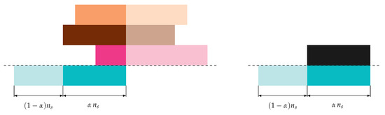 Thus, we make the assumption of a block interference channel [41], which is a widely-used model in the literature (see, e.g., [27] and the references therein). Clearly, this is a simplification, since a codeword in reality may experience various interference levels due to multiple packet collisions. Note also that for our asynchronous RA protocol, the interference is confined to the beginning, the end, or to the beginning and the end of a codeword. This observation is exploited for the code design. The surrogate channel model is exemplified in Figure 2. We will illustrate its validity in Section 4.