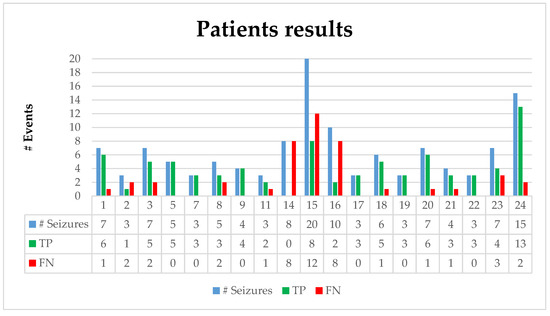 The overall performance of the proposed method was negatively affected by three patients—14, 15, and 16. Excluding these outliers enhances the overall TPR (mean TPR = 81.5%, median TPR = 85.7%). The main reason for the poor performance of the algorithm on these patients was an excessive level of artifacts. The EEG signals from patients 14 and 15 contained significant artifacts in the recordings and would require an enhanced preprocessing method to be able to differentiate the activities. The seizures for patient 16 lasted an average of only 8.4 s, which was less than the length of the epoch of the proposed system. Only one seizure lasted more than 10 s (14 s). It is hoped that by decreasing the epoch size, these types of short seizures attacks will be detectable.