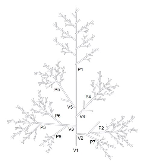 - Godin, C.; Ferraro, P. Quantifying the degree of self-nestedness of trees. Application to the structural analysis of plants. IEEE Trans. Comput. Biol. Bioinform. 2010, 7, 688–703. [Google Scholar] [CrossRef] [PubMed]