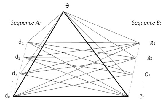 - The sequence A is linked to the sequence B, and θ is then joined to sequence A and sequence B, respectively.