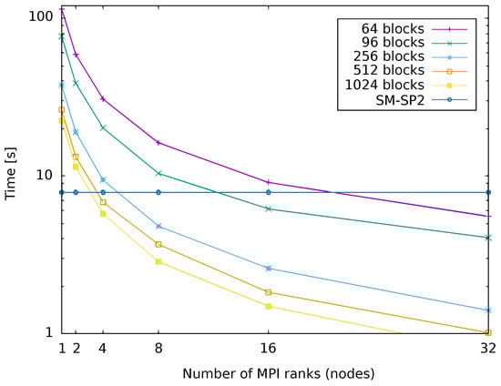 4.5. Single-Node SM-SP2 versus Parallelized Implementation of G-SP2