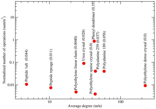 | polyethylene chain 1024 | 12,288 | 290,816 | 23.7 | chain of polymer molecule, almost 1-dimensional |