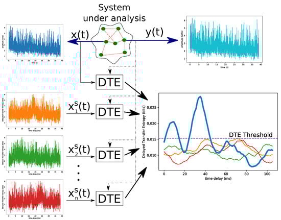 where the amount of surrogate repetitions n is inverse proportional to the desired significance level , and for a one-sided hypothesis test or for a two-sided hypothesis test. A full diagram of surrogate with DTE is presented in Figure 1.