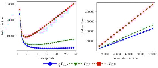 92], relating probability of failure and checkpoint times to the overall runtime of the application. We assume equidistant checkpoints and aim at determining the optimum number of checkpoints