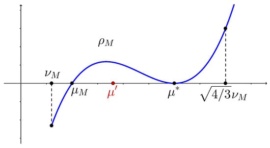 If the set  is unitary, then necessarily  is unitary, due the geometry of its boundary (see proof of Lemma 3). In such case (negative validation of step (9)) the steps (10)–(13) are omitted and, from Lemma 1, the algorithm returns the Čech scale as well as the intersection point  at step (14); in otherwise (positive validation of step (9)), the root  is not the Čech scale (see Figure 5), and then we should find another scale  such that , and repeat from step (7). It is possible, for some configurations of the 2-disk system, that the map  has a behavior as in Figure 5.