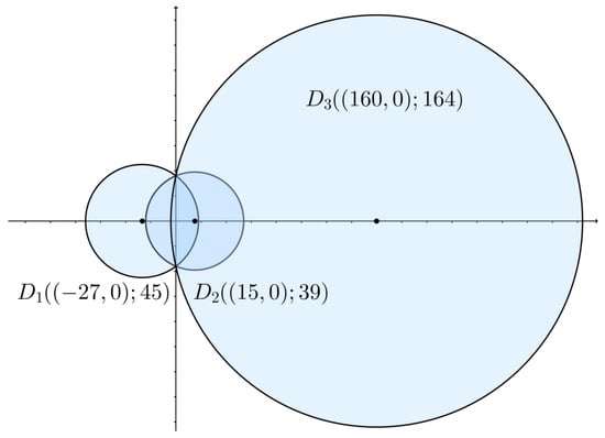 On the other hand, if the 2-disk system M consists of just three disks and , then its Čech scale can be computed with only one application of the numerical method, as we asseverate in the following lemma.