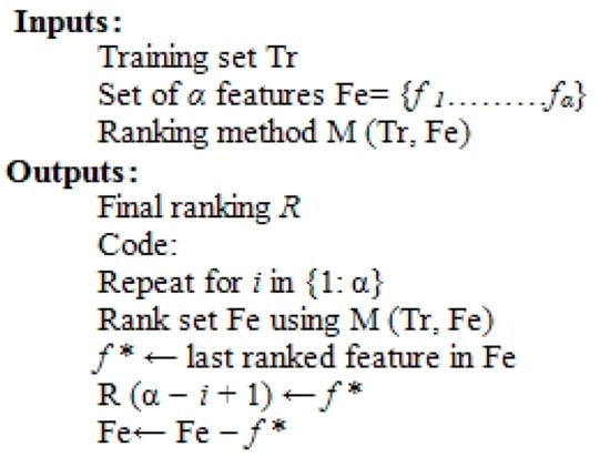Feature selection is one of the most crucial steps in the development of efficient pattern recognition models [48]. We observed that some models reported in the literature have yielded low accuracy scores and presented high training times. The consequence is that this may present unwarranted hiccups when a proposed model is deployed for the purpose of real-time commercial applications [49]. The inherent problem would persist severely in multilingual speech recognition systems because of the different styles of expressing satisfaction or dissatisfaction across various languages, cultures, and accents. Consequently, we have decided to perform feature selection using the RF-RFE algorithm, which has been reported to be successful in gender voice recognition [31]. Figure 2 depicts the iterative cycle involved in the application of the RF-RFE algorithm.