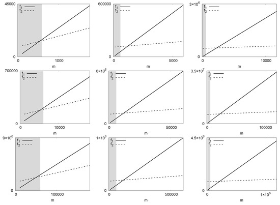Figure 8 shows the average CPU times required by our implementations with planar graphs. Here, for each n and k, graphs were generated for twenty-five different values for m, using an upper limit of (this is the maximum number of edges in a planar, loop-free, multi-digraph using k edge colours). As with Figure 6, the right boundaries of the grey rectangles in these charts indicate (the maximum number of edges in a planar digraph). All other experimental details are the same as the previous subsection.