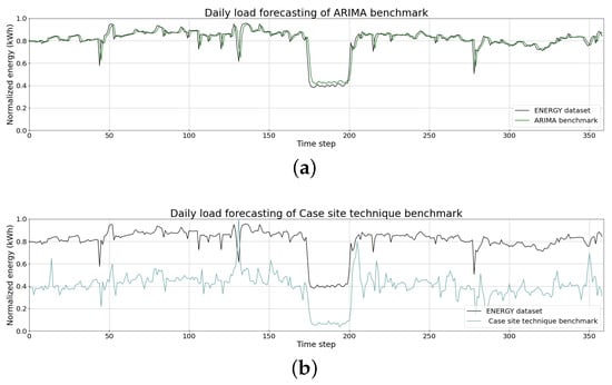 Daily load forecasting using (a) the case site technique and (b) the ARIMA model.