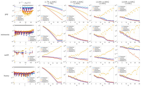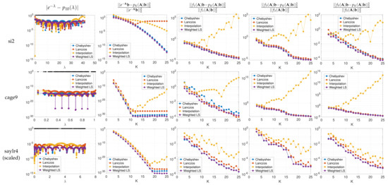 - Chen, J.; Anitescu, M.; Saad, Y. Computing f(A)b Via Least Squares Polynomial Approximations. SIAM J. Sci. Comp. 2011, 33, 195–222. [Google Scholar] [CrossRef]