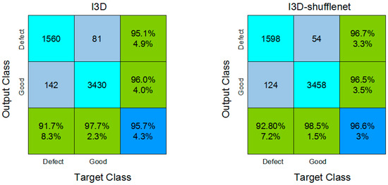 Figure 10 presents the confusion matrix for I3D and the I3D-shufflenet.
