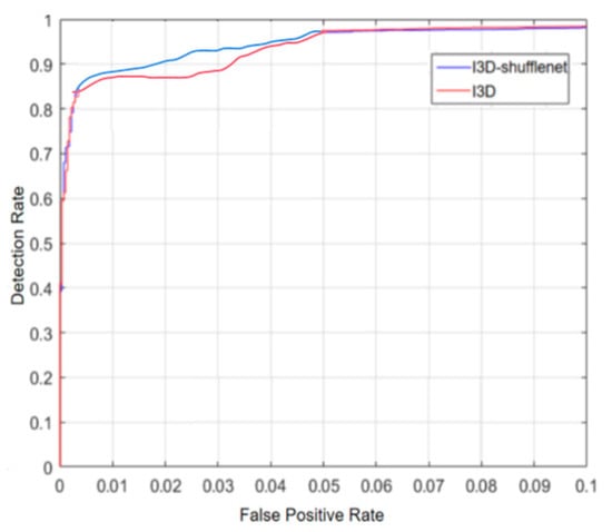 Table 1 presents the recall, precision, Area under the ROC (Receiver Operating Characteristic) Curve (AUC) and F1 score for I3D and the I3D-shufflenet. Figure 11 presents the ROC curve [19,20,21] of I3D and the I3D-shufflenet.