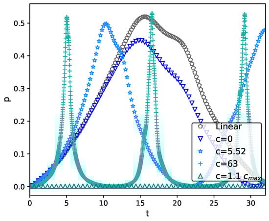 - A nonlinear regime, when is maximum. In this case, and consequently the period is constant: