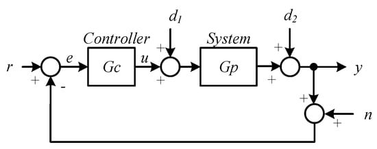 Consider a general block diagram representation of a closed-loop system in Figure 1, assuming the following representation where r is the reference input (set-point), y is the controlled output, e is the error signal, u is the control output, d1 is a load disturbance, d2 is an output disturbance, n is a noise signal, and Gc and Gp are the controller and process transfer functions.