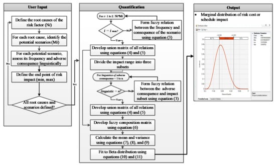 Fuzzy logic is often used to solve problems characterized by subjective uncertainty, ambiguity, and vagueness []. It has been widely applied by researchers in construction to incorporate the influence of factors that are linguistically assessed into an uncertain variable quantity [,]. The application of fuzzy logic provides a means of quantifying subjective evaluations and converting this information into a probability distribution function for input into MCS-based risk assessment models. The application of fuzzy logic for the linguistic assessment of root causes of risk factors in onshore wind projects, however, remains relatively unexplored.