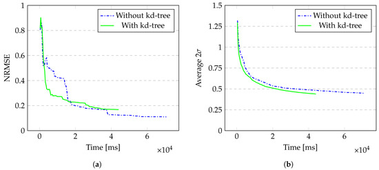 In these experiments, we set to 0, meaning we allowed encapsulating cuboids to be of any size. The choice of s and m removed the need to impose a stricter threshold. However, this might not always be the case. This depends on the application. Choosing a larger value puts an upper limit on the size of the cuboids, resulting in a minimum resolution of the spread of the test points. For , a value of 1 was chosen, which allows for nodes to be far from the data points. Choosing a lower number means abandoning the kd-tree for nodes that are close to the data points.