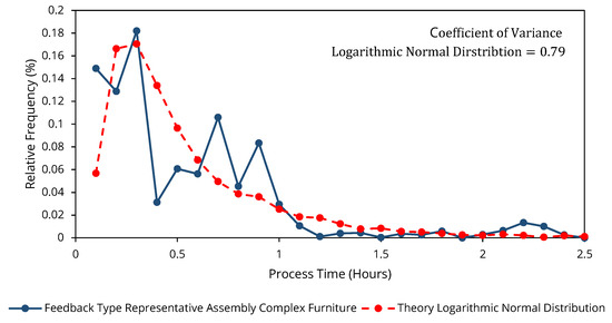 Example of job processing time deviations for a type representative in individual furniture assembly.